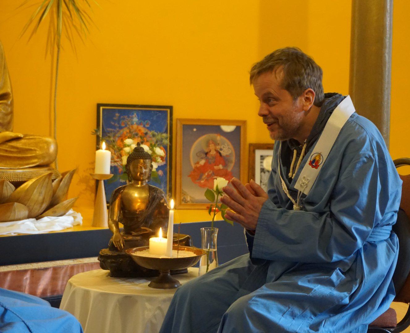 I was diagnosed with Multiple Sclerosis in 2010 and have found the Dharma invaluable in helping me come to terms with it. I was ordained in March 2022, taking the Sanskrit name Buddhasevaka, which means “he who serves the Buddha“.